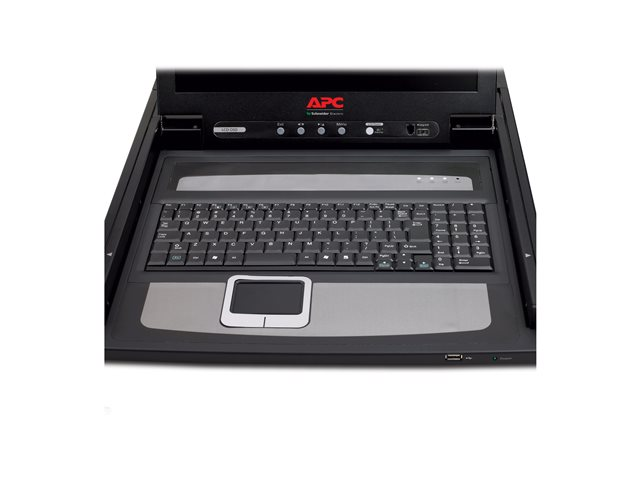 1U rackmonteringsbart tangentbord, mus och LCD-konsol med US-engelsk tangentbordslayout.