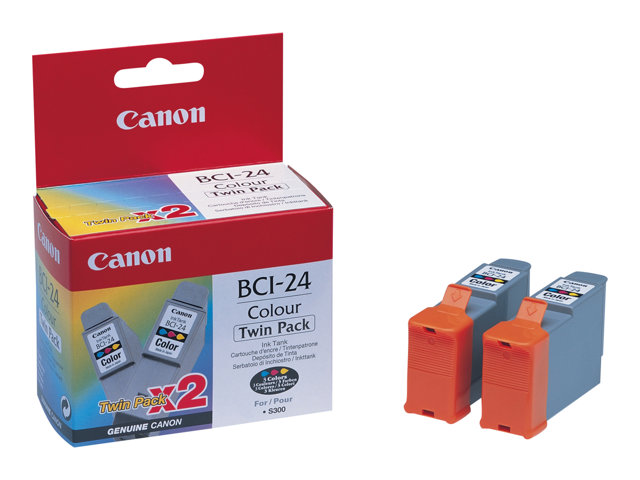 Canon BCI-24 Colour Twin Pack - 2-pack - färg (cyan, magenta, gul) - original - bläcktank - för i45X; MultiPASS MP390; PIXMA iP1000, iP1500, iP2000, MP110, MP130; S200; SmartBase MP360