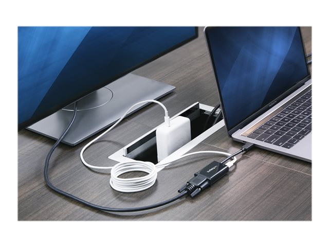 StarTech.com USB C till VGA-adapter med strömförsörjning - videokonverterare USB Type-C till VGA-skärm för 1080p, med laddning - strömförsörjning på 60 W för direktladdning - Thunderbolt 3-kompatibel - svart - USB/VGA-adapter - USB-C (hane) till HD-15 (VGA), USB-C (enbart ström) (hona) - Displayport 1.2/Thunderbolt 3 - 15 m - USB Power Delivery (60W), 2048 x 1280-stöd 60 Hz - svart