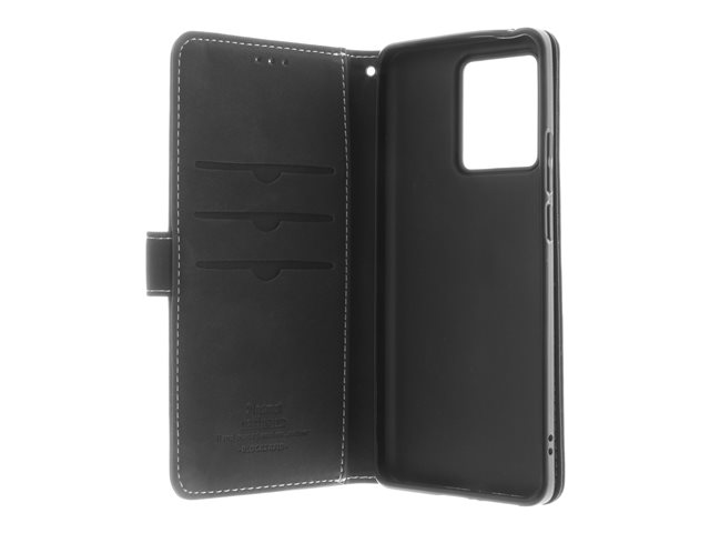 Insmat - Vikbart fodral för mobiltelefon - genuint läder, polykarbonat, kartong+papper+aluminiumfolie, bomullssömmar - svart - för Motorola Moto Edge 40