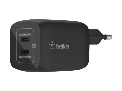 Belkin BoostCharge Pro - Strömadapter - PPS-teknik - 65 Watt - 3.25 A - PD 3.0, Fast Charge - 2 utdatakontakter (USB-C) - svart WCH013VFBK