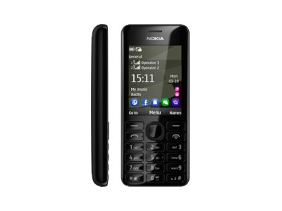 Nokia 206 - Mobiltelefon microSDHC kortplats - 240x320 pixlar - TFT - 1.3 Mpix - svart