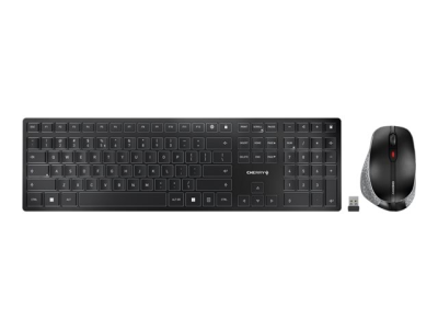 CHERRY DW 9500 SLIM - Sats med tangentbord och mus - trådlös - 2.4 GHz, Bluetooth 4.0 - USA med eurosymbol - tangentbrytare: CHERRY SX - grå, svart - plastfri förpackning
