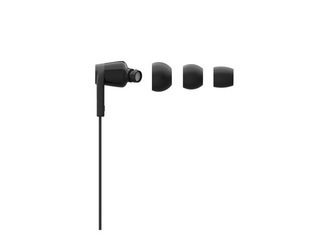 Belkin ROCKSTAR - Hörlurar med mikrofon - inuti örat - kabelansluten - Lightning - ljudisolerande - svart - för Apple 10.5-inch iPad Pro; iPad mini 4; iPhone 7, 7 Plus, 8, 8 Plus, X, XR, XS, XS Max G3H0001BTBLK