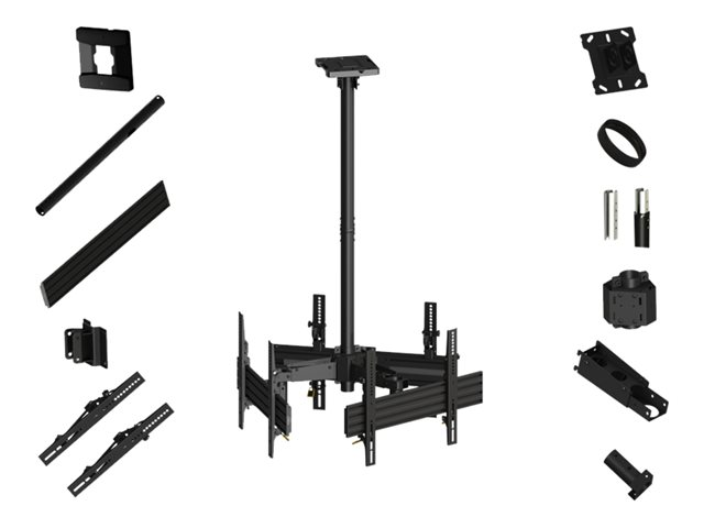 Multibrackets M Ceiling Mount Pro MBC3U - Monteringssats (takplatta, skyddslock för takplatta, 3 kopplingsplattor, 3 kopplingsstänger, 3 stödskenor, trekantig koppling, 4 förlängningsrör (80 cm), 3 skenor, 6 lutningsarmar) - för 3 LCD-bildskärmar - aluminium, stål - svart - skärmstorlek: 40"-65" - takmonterbar