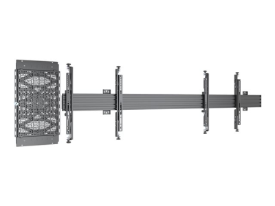 Monteringskomponenter8 förlängningsskenor, skjutpanel för medieförvaring, 2 mindre väggplåtar, 2 ändkåpor för stång, 4 mikrojusterbara armar (40 cm), 2 enskärmsskenor (48 cm), enkel skärmskena (100 cm)