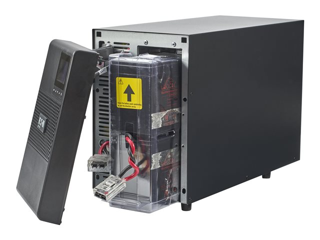 EgenskaperAdvance Battery Management (ABM), hotswap-batterier, LCD-bildskärm, dubbel konvertering, 3-stegsladdning